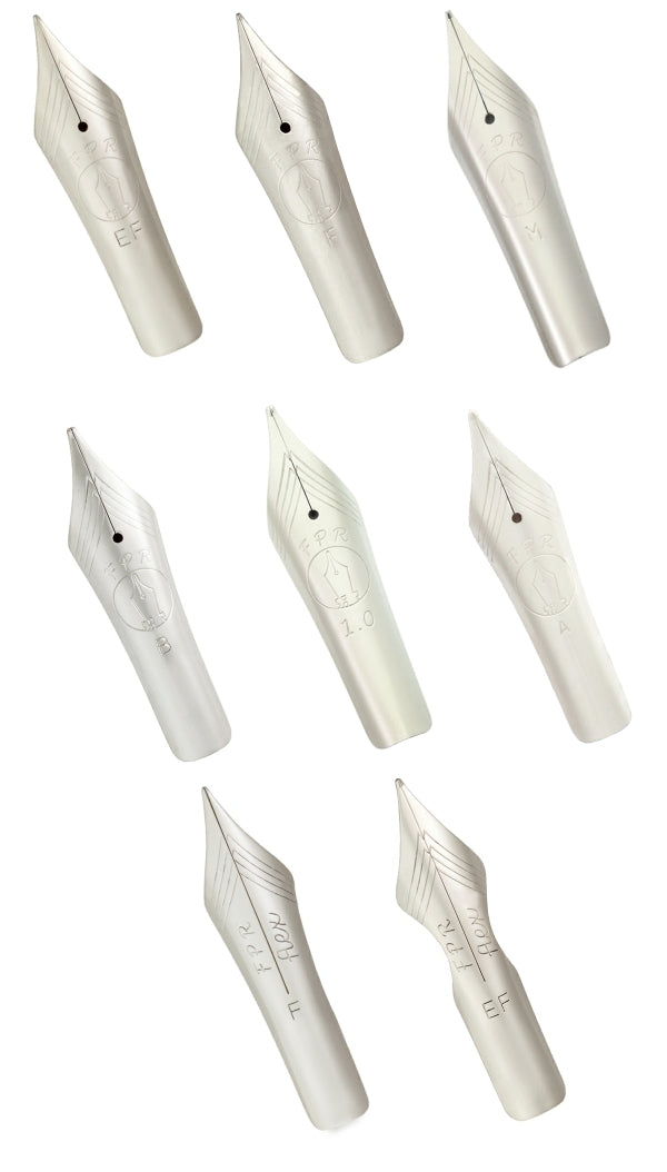 Get 8 different FPR #6 chrome nibs for one low price. This sampler pack comes with one each of the following nibs: