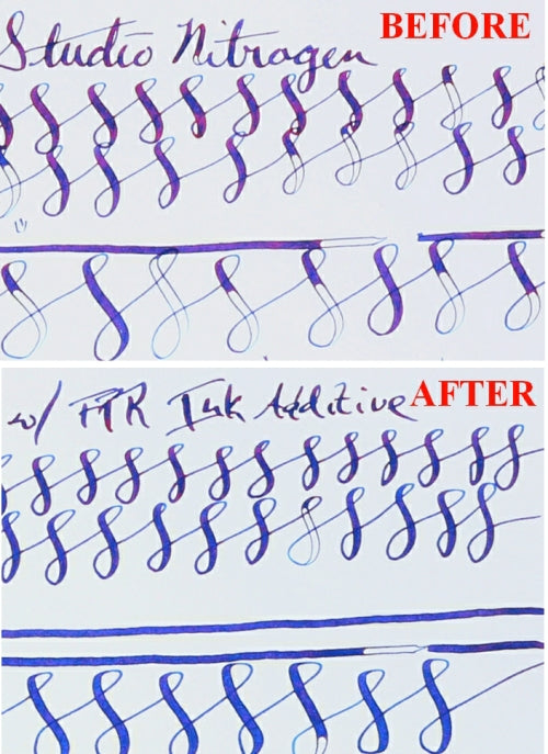 Note: Some inks will require more or less than the recommended amount, so we suggest experimenting with a small amount of ink before adding Railroad X to a full bottle. Also, some inks will be more likely to feather (make lines look fuzzy) when using Railroad X.