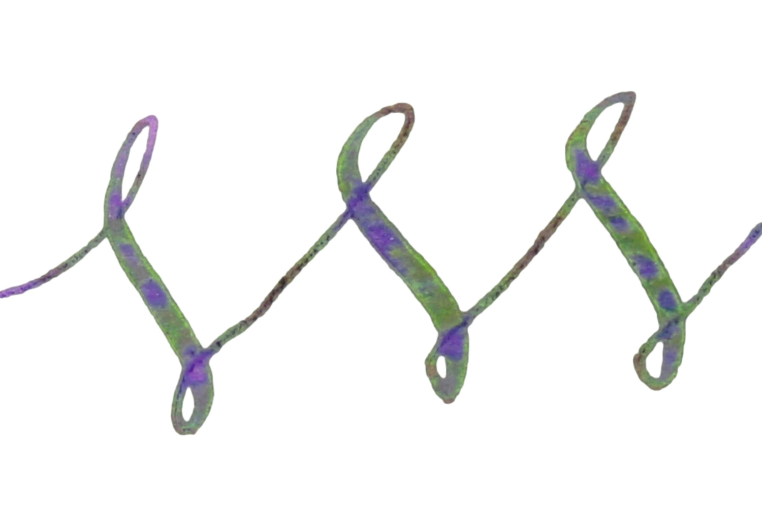 FPR Mardi Gras ink is a beautiful purple that sheens an oil slick green with wetter lines, hence the name Mardi Gras. It is quite a sight to behold.
