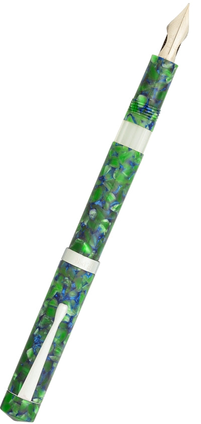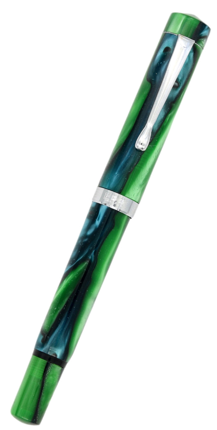 The piston-filled FPR Jaipur V2 features a premium acrylic/ebonite body, cap, and matching piston blind cap. They come equipped with screw in nib units and ebonite feeds but also accept our standard #6 FPR nib units with plastic feeds for pocket carry.