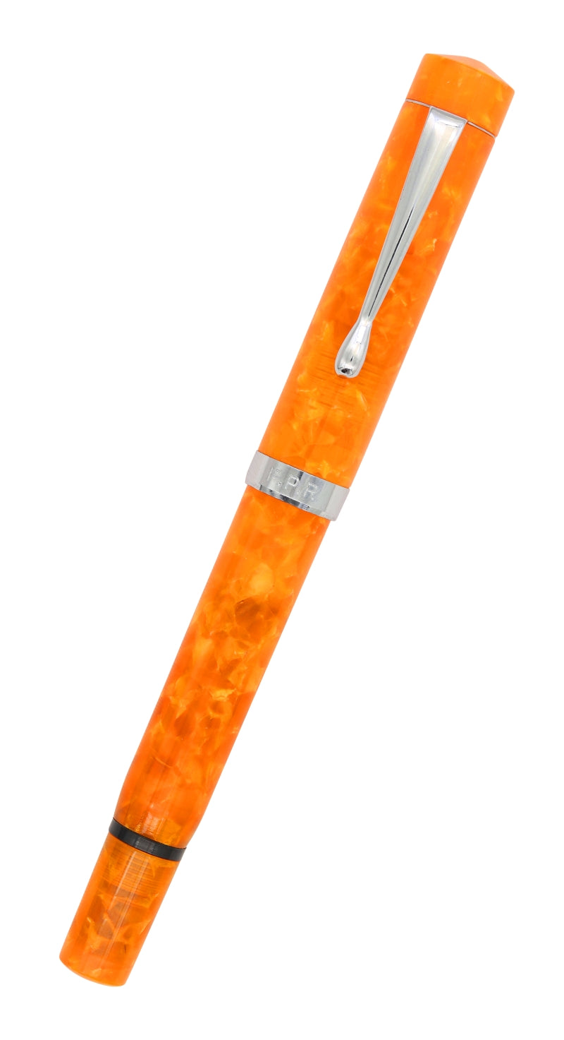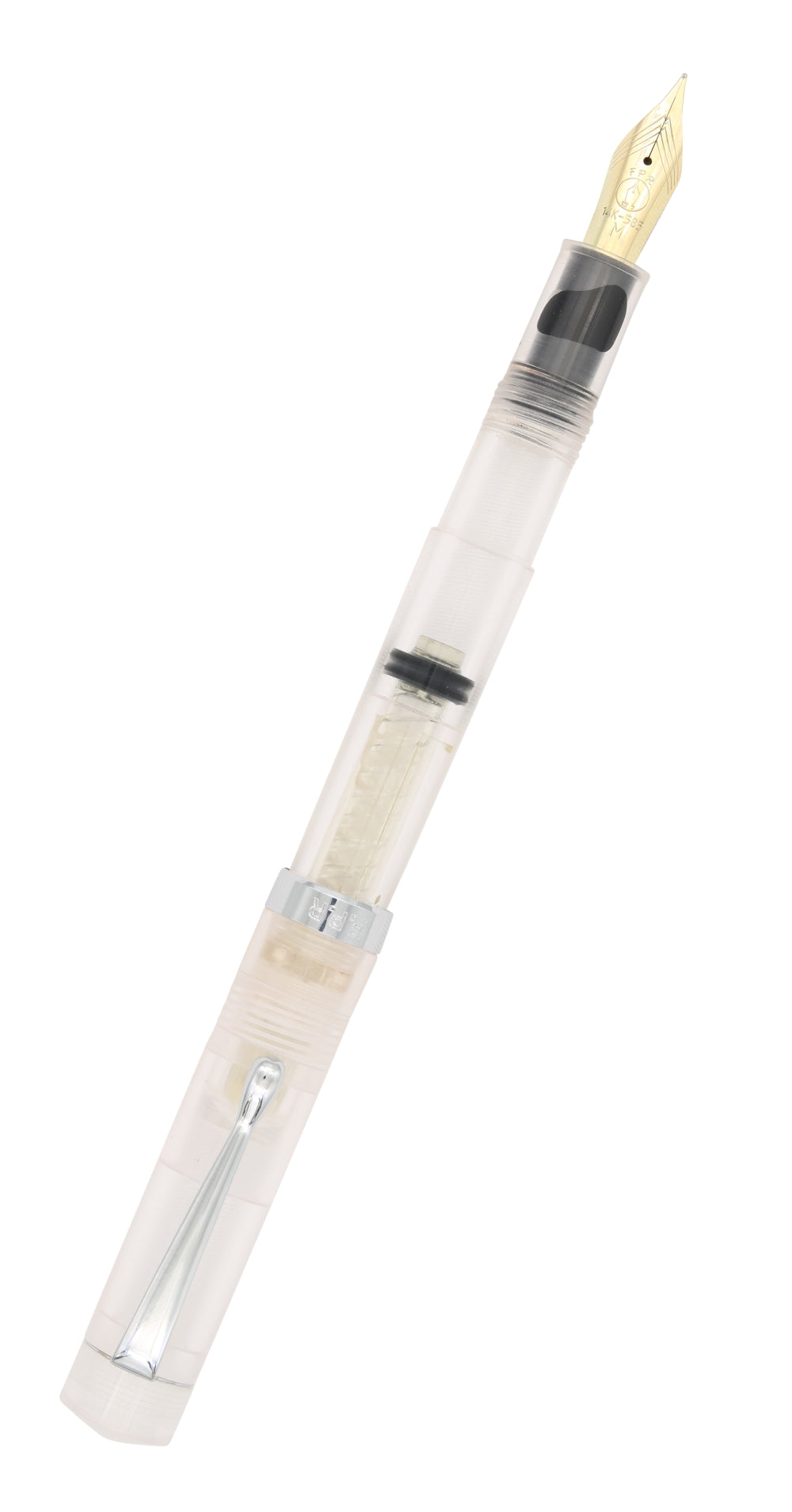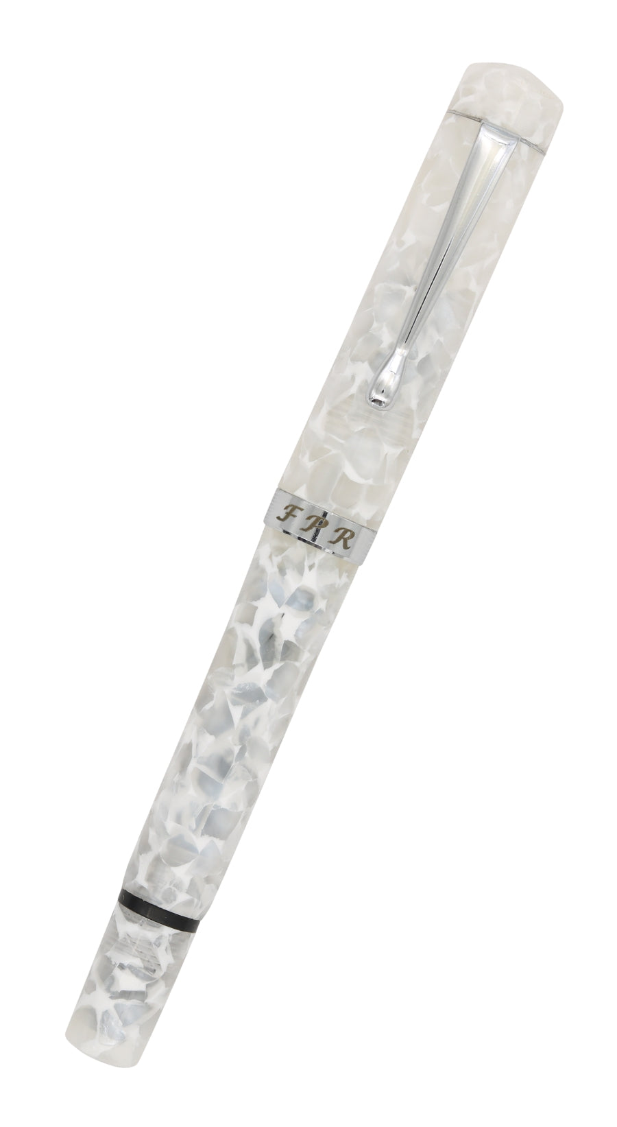 The Jaipur V2 features a premium acrylic/ebonite body, cap, and matching piston blind cap. It features screw in nib units with ebonite feeds and also accepts our standard #6 nib units with plastic feeds for pocket carry plus a clutchless piston mechanism. (Click here for more information on custom engraving. Color filled engraves are recommended for the cracked ice acrylic versions.)