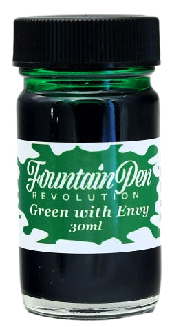 We are proud to partner with another small family business to bring you FPR Green with Envy Fountain Pen Ink. It is a pleasant green that is not too dark not too light... a green to be envied. All FPR ink is made in the USA.