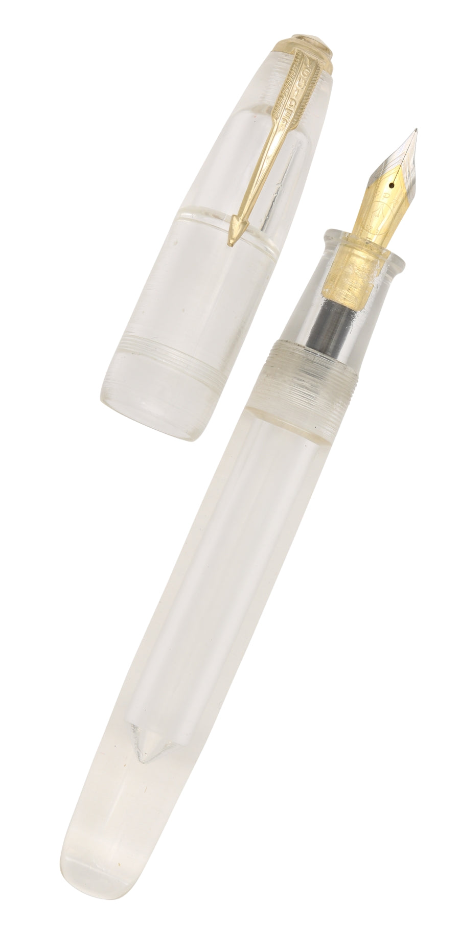 The Guider Super Zimbo fountain pen is HUGE! Made of clear acrylic, it is a beautiful demonstrator pen made especially for those with larger hands or an affinity for extra large pens. Guider fountain pens are handmade in Rajahmundry, India.