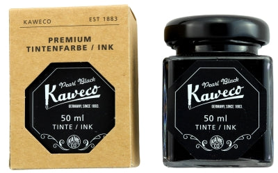 Kaweco Pearl Black fountain pen ink. Kaweco fountain pen ink is safe to use in any of the fountain pens we sell. Available in 50ml glass bottles or 1.8ml samples.