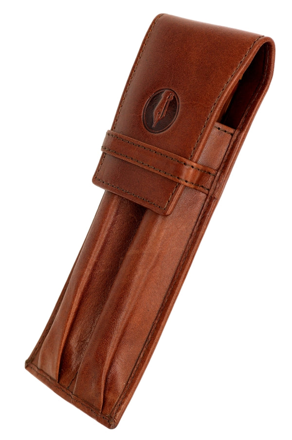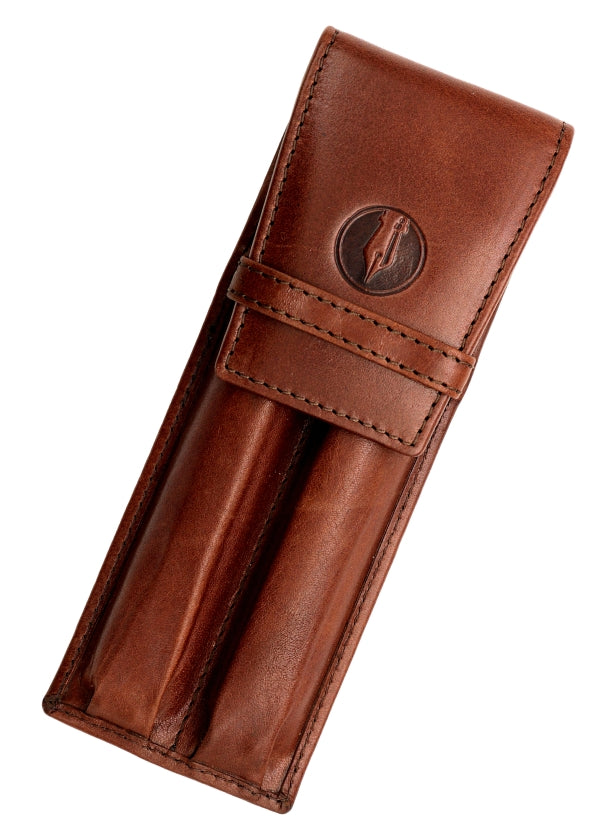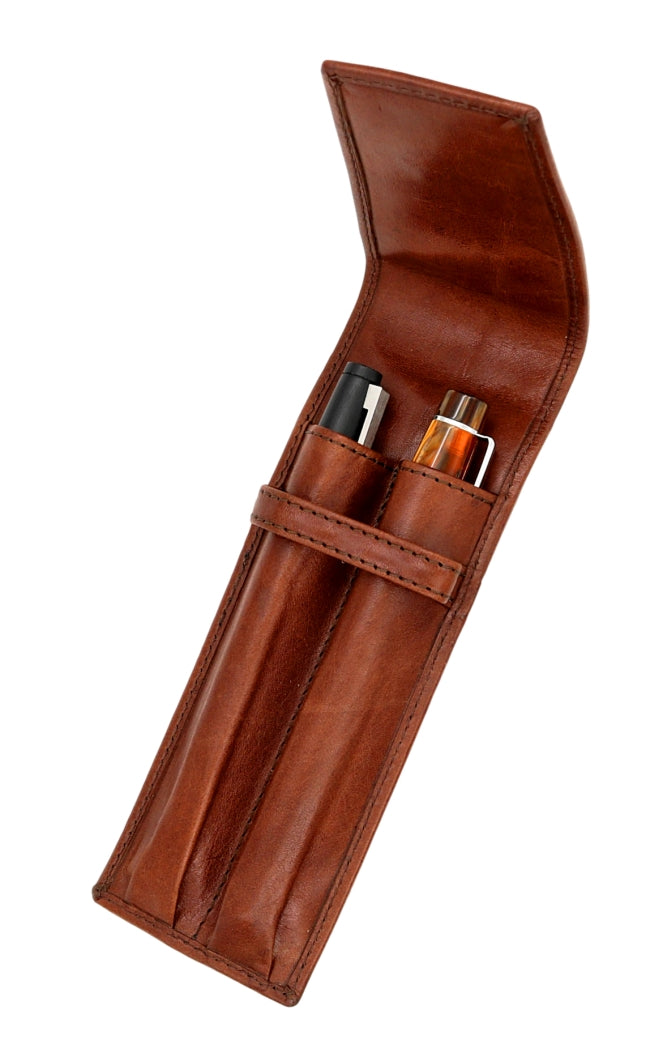 Keep your pens safe, even longer pen models, in our FPR Leather Two Pen Pouch. Made of full-grain leather and featuring a sturdy fold-over flap and closure this is a great choice for keeping your favorite pens safe in a bag or briefcase.