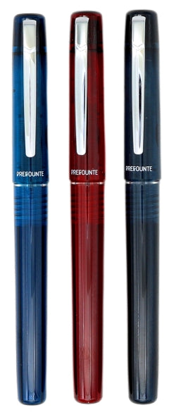 The Platinum Prefounte fountain pen features innovative capping technology that prevents ink from drying out for up to a whole year! It accepts Platinum cartridges and converters (sold separately).