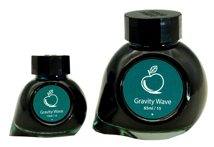 Colorverse Gravity Wave fountain pen ink is part of their season 2 Astrophysics series. It is a teal ink that can sheen to pink on some papers and with wetter pens. Colorverse inks are made in South Korea and are safe to use in any of the fountain pens we sell.