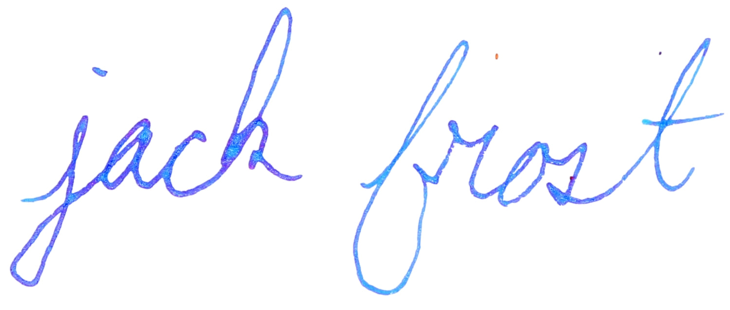 Diamine Jack Frost ink was initially launched with the 2019 Inkvent Calendar but is now a part of their regular collection. A redish-pink sheening ink with blue shimmer, Jack Frost has it all! It works best with broader nibs to best show off the sheening and shimmering effect.
