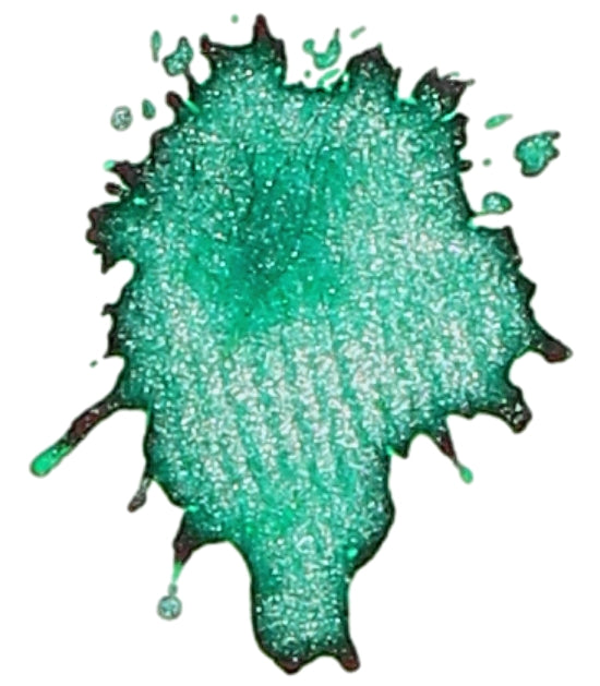 Diamine Magical Forest Shimmer fountain pen ink. This ink is a beautiful green color with silver specks that shimmer in light. Always remember to shake your bottle of Diamine Shimmer ink before use. Diamine fountain pen ink is safe to use in any of the fountain pens we sell.