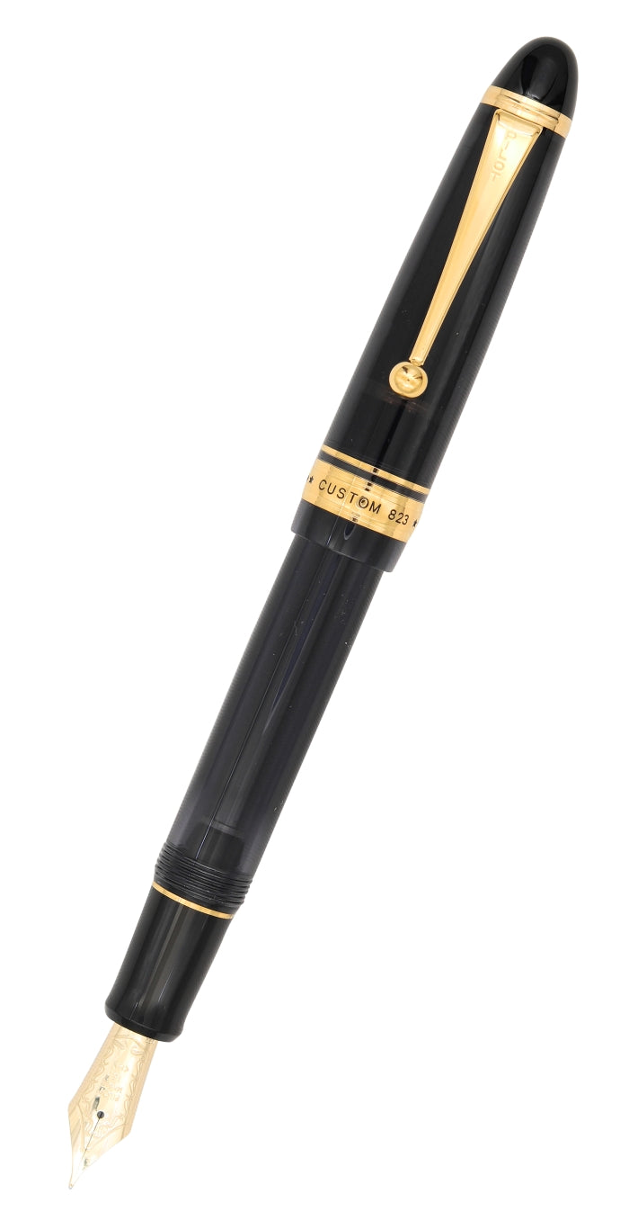 Featuring a translucent body and cap and gold trim the Custom 823 is a truly fine writing instrument. This fountain pen features a 14k gold nib and a vacuum filling system.